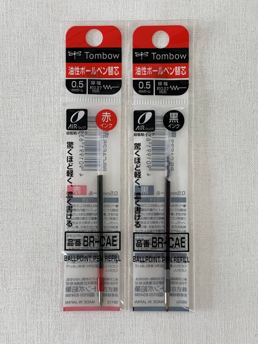 - 【新品未使用品ですがインクの中に滲みあり】Tombow トンボ 油性ボールペン替芯 0.5mm BR-CAE33 BR-CAE25 黒 赤 2本セット