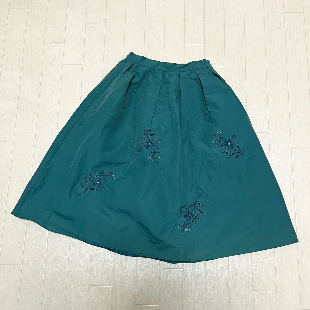 > 和723★③ JILL STUART ジルスチュアート フレアスカート 膝丈ほど 刺繍 ビジュー M グリーン レディース