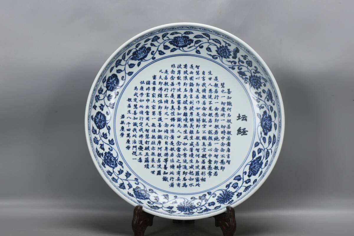 > ◆旧家蔵出◆古美術 中国古玩 大明永樂年製款 青花 纏枝蓮花 詩経図大盤 細密細工造 置物 擺件 古賞物 骨董 時代物 A04