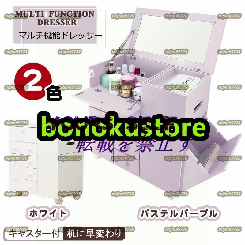 > ドレッサー たっぷり収納力 組立不要 キャスター付き 引き出し 鏡付き天板 幅50cm 化粧台 鏡台 コスメワゴン ロータイプ コスメボックス