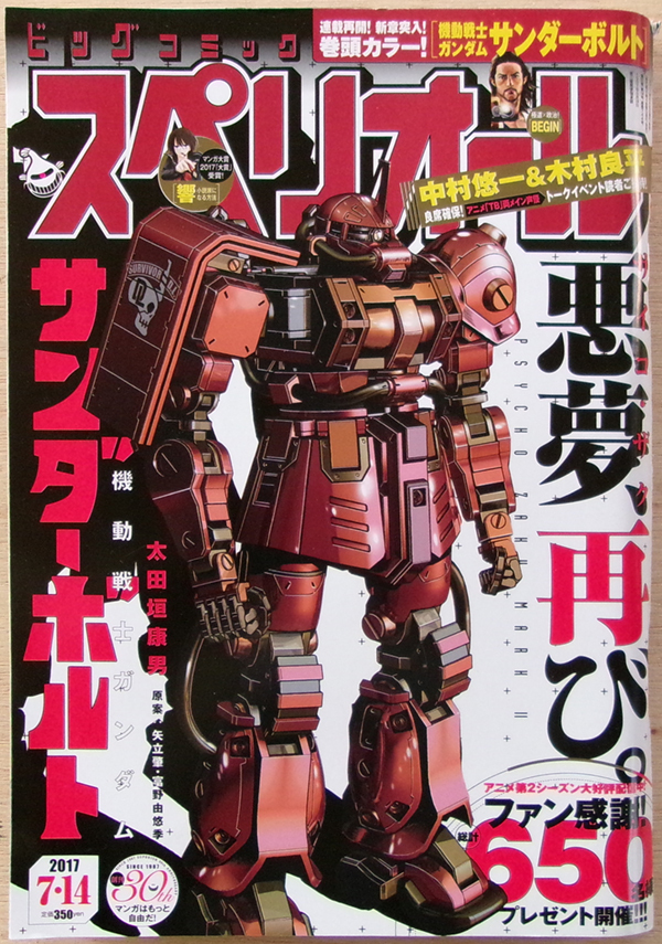 > ■ ビッグコミックスペリオール 2017.7.14 No.14/表紙+巻頭カラー[機動戦士ガンダム サンダーボルト]太田垣康男/池上遼一 柳本光晴