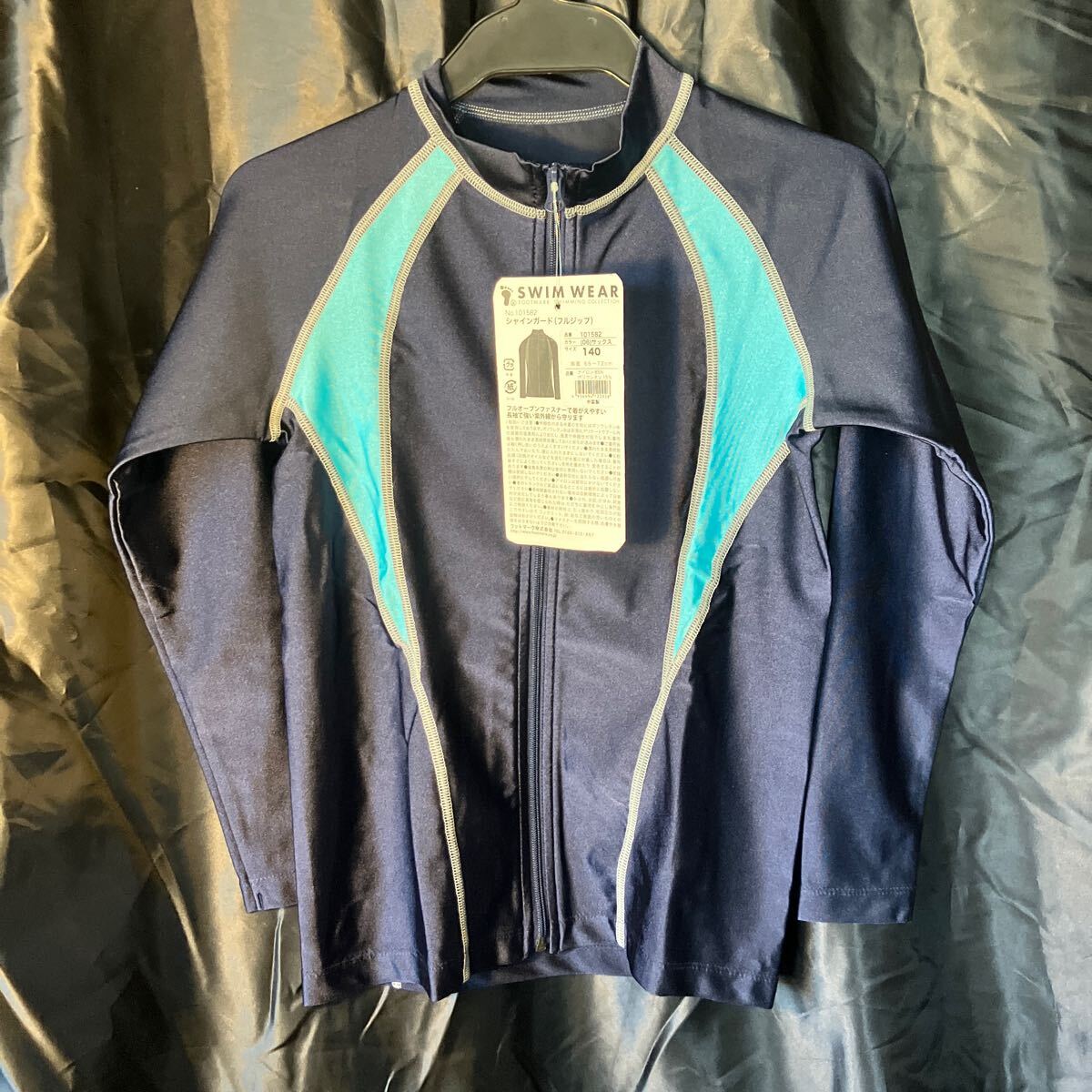 - スイムウェア 140サイズ ネイビー×水色 シャインガード(フルジップ) ヴィンテージ 新品未使用品 ◎おすすめ ◎スポーツ