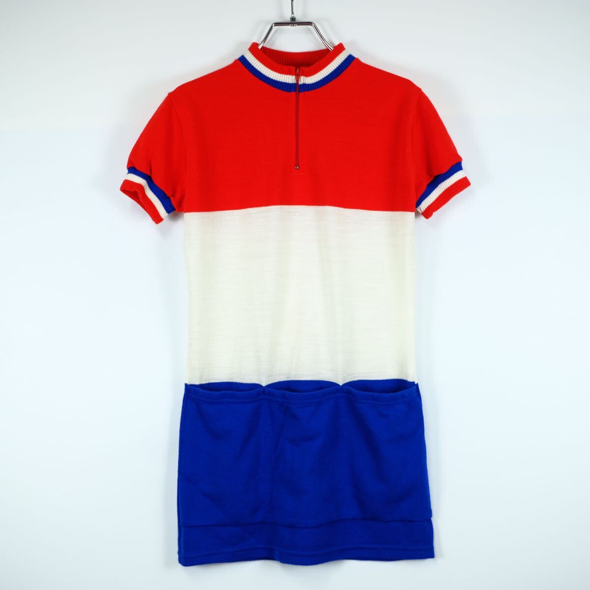 - 1980s フランス製 ビンテージ サイクリングTシャツ 半袖ニット 古着屋 ヴィンテージ ユーロ 90s カラフル トリコロール デザイン