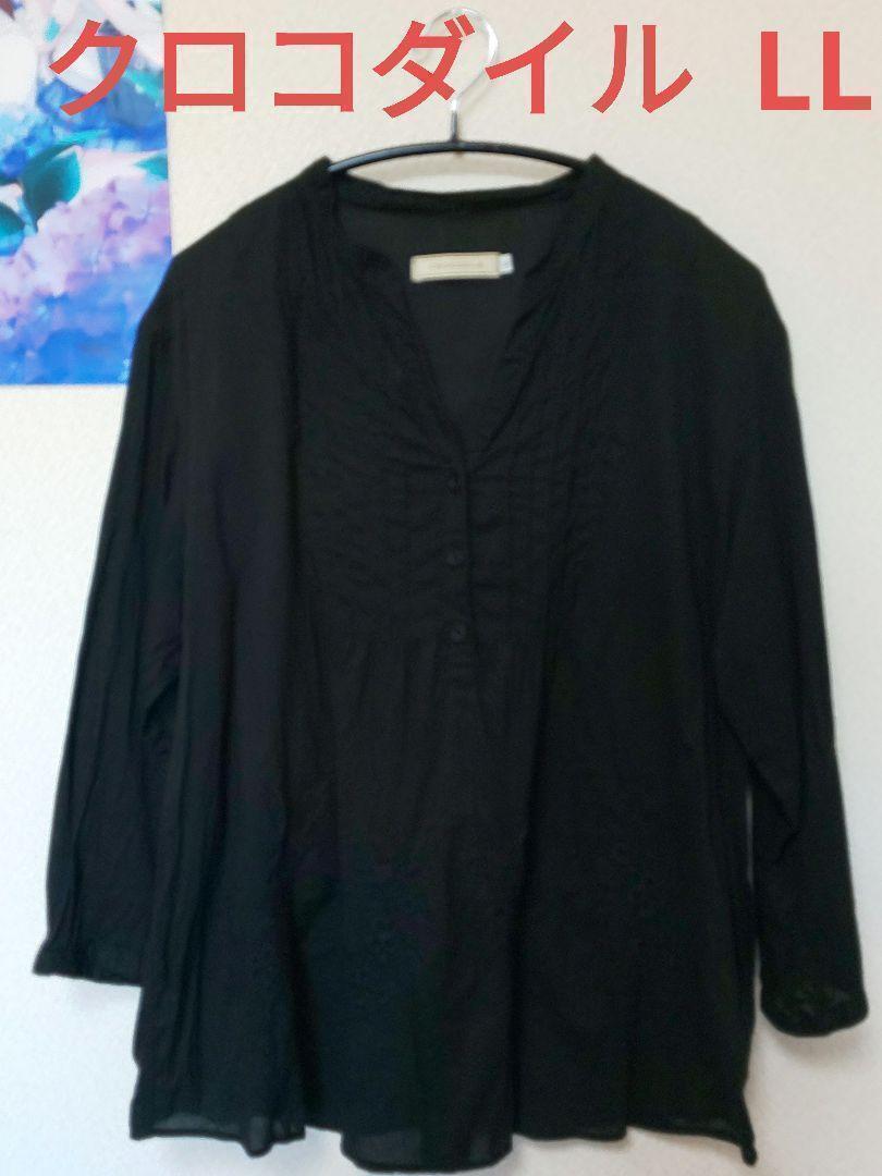 - 値下げ CROCODILE クロコダイル レディース 刺繍 ブラウス 黒 LL 綿