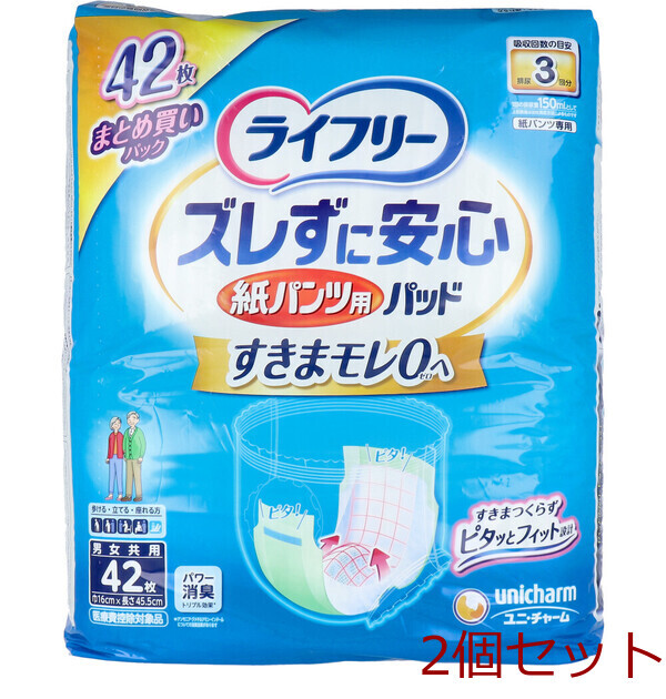 - ライフリー ズレずに安心紙パンツ用尿とりパッド 男女兼用 42枚入 2セット