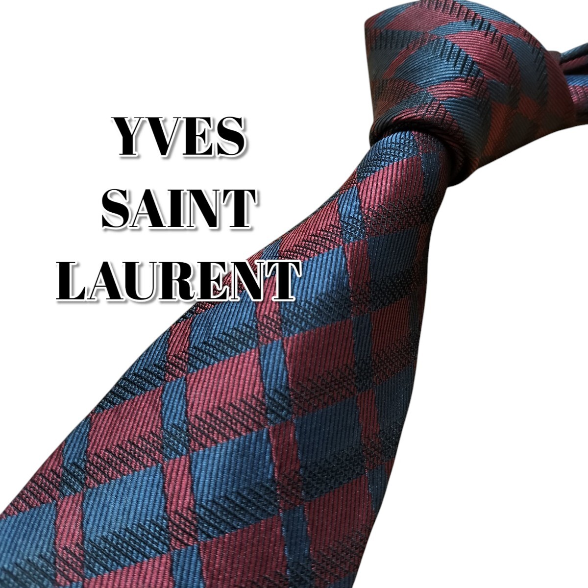 - ★YVES SAINT LAURENT★ ダークレッド系 チェック柄 日本製