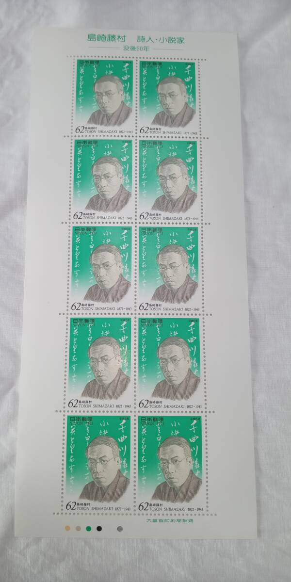- ☆未使用☆「島崎藤村 詩人・小説家 没後50年」1シート(211)