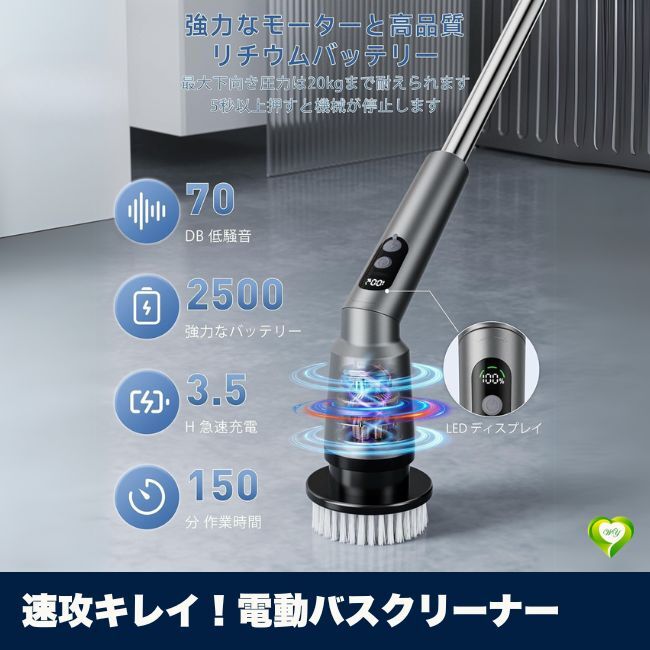 > 【速攻キレイ!電動バスクリーナー】バスポリッシャー 電動掃除ブラシ コードレス パワフル 回転式 家庭用 効率アップ 防水 人気 おすすめ