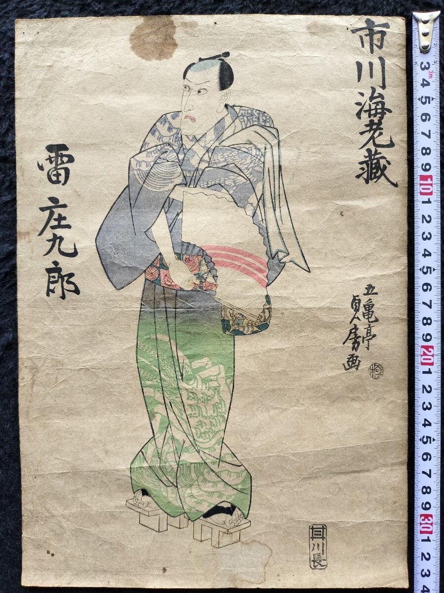 - 江戸期/真作 歌川貞房「雷庄九郎」本物浮世絵木版画 歌舞伎 役者絵 芝居絵 錦絵 大判