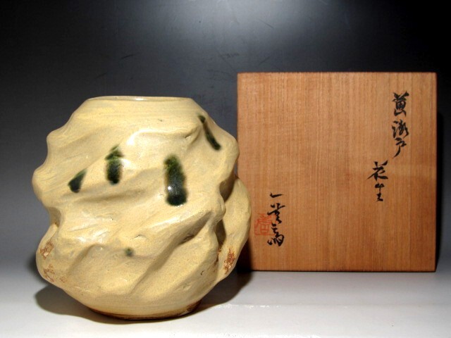 - 加藤唐九郎 黄瀬戸花入「苔清水」風格のある逸品 k368