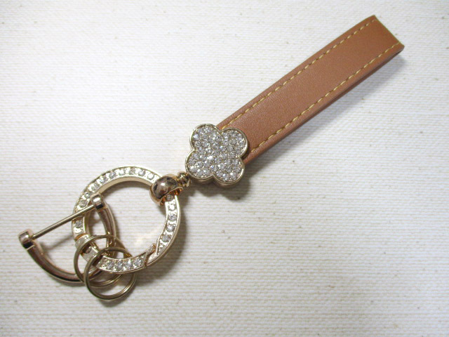 - 新品 キーホルダー キーリング レディース PUレザー ラインストーン&ゴールドカラーのラグジュアリー スタイリッシュデザイン