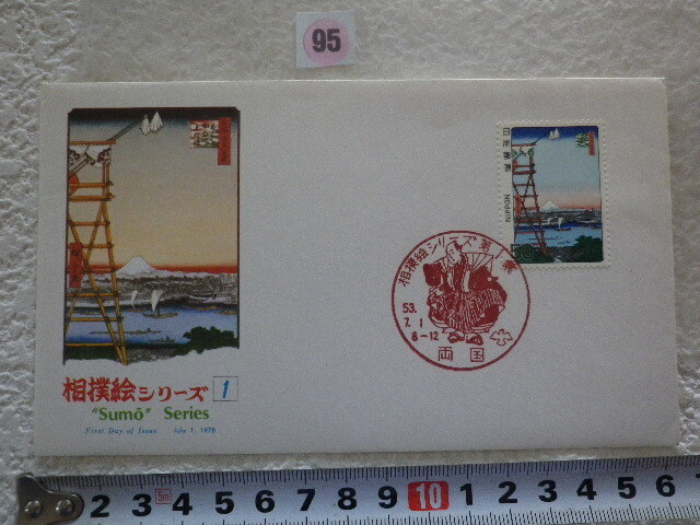 - FDC 相撲絵 第1集 1貼1消 領国印 解説書有●95●