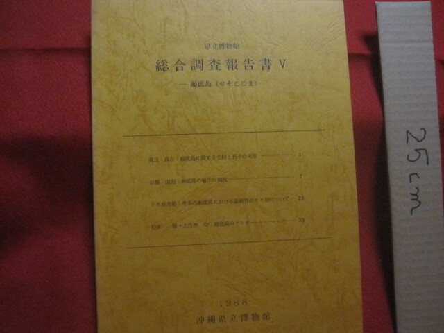 - ☆県立博物館 総合調査報告書 Ⅴ 瀬底島 ( せそこじま ) 1988 沖縄県立博物館 【沖縄・琉球・歴史・文化】