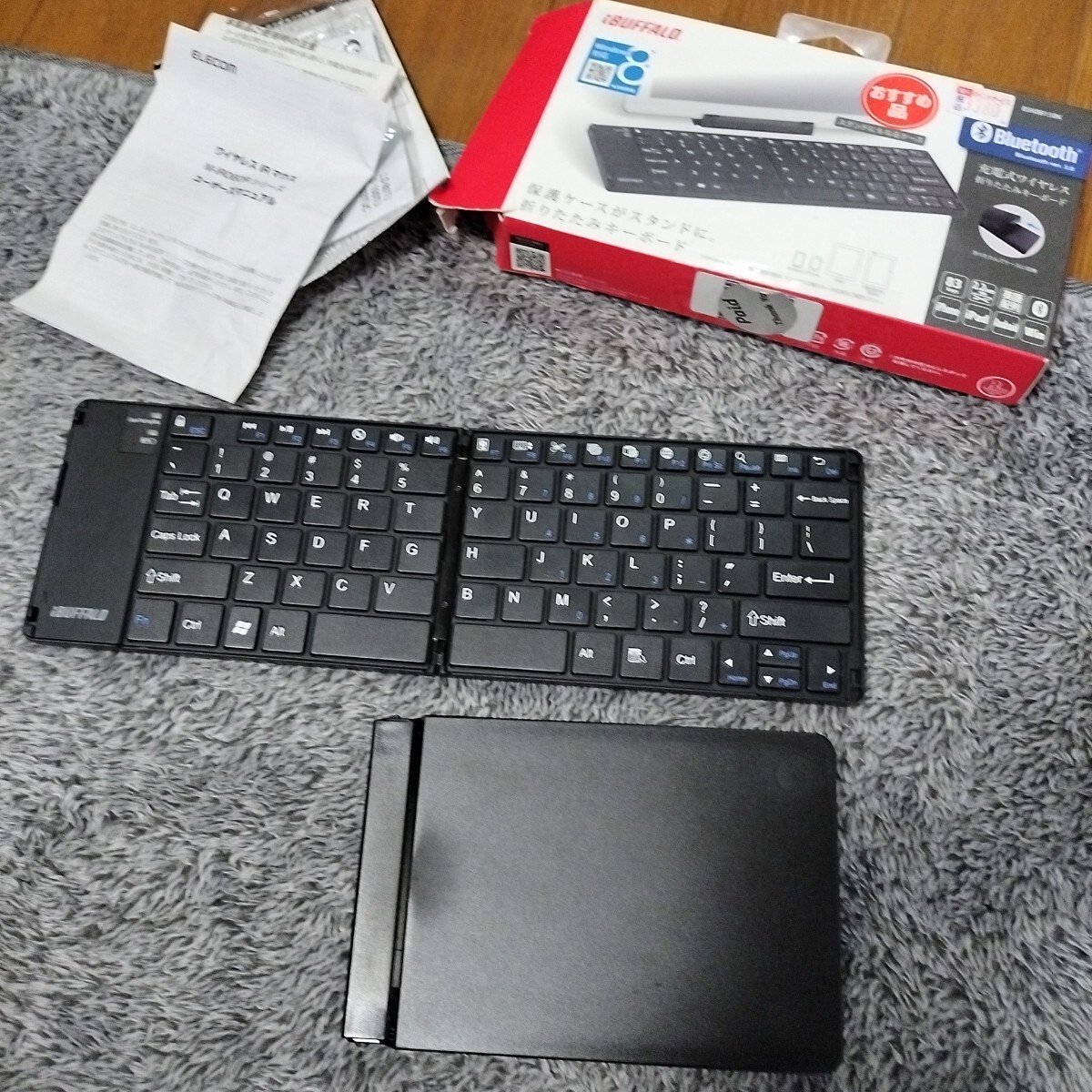 - ワイヤレスキーボード Bluetooth3.0対応 充電式 ケース付き BSKBB15BK (ブラック)折りたたみキーボード BUFFALO バッファロー