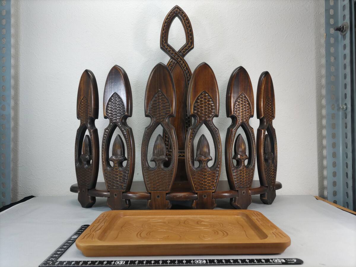- ■送料無料!■まとめて■アイヌ文様 ・トレー■木彫り・スリッパラック■木製■アイヌ模様・紋様・工芸品■郷土民芸品■2点セット!
