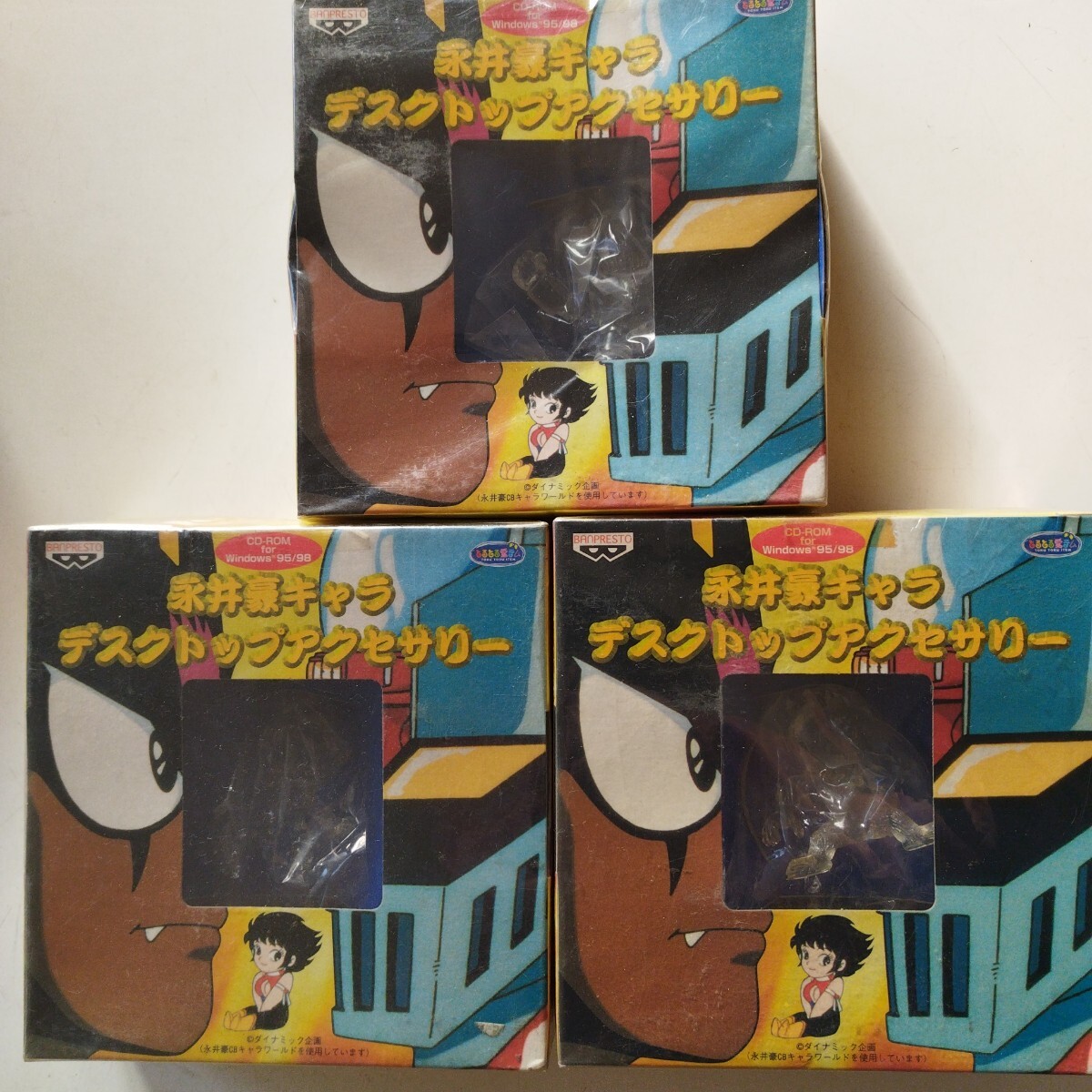 > B 永井豪 デスクトップアクセサリー 3点セット マジンガーZ デビルマン キューティーハニー クリアフィギュアキーホルダー