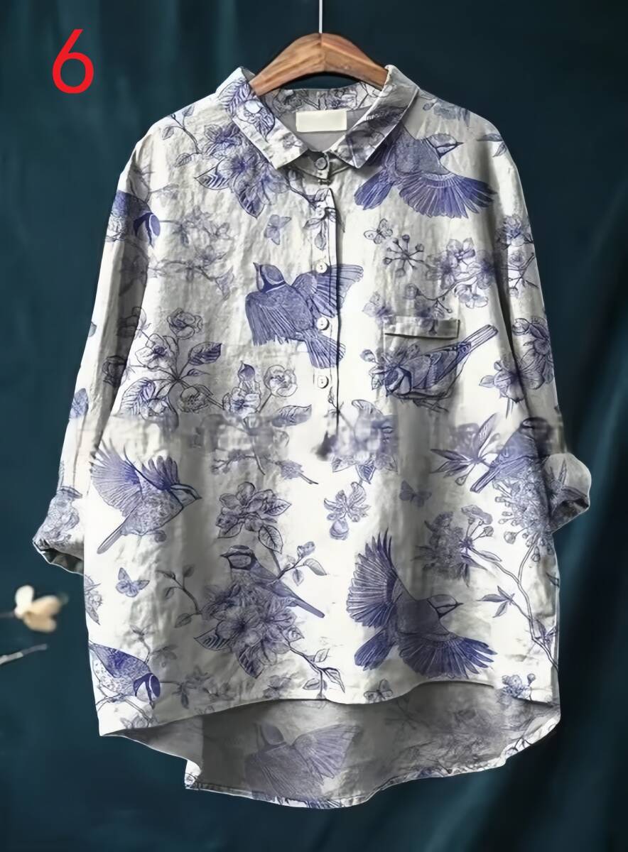 - 人気推薦シャツ ブラウス 着痩せ 綿麻 プリント柄トップス レディース長袖ゆったり大きいサイズ 体型カバーチュニック部屋着