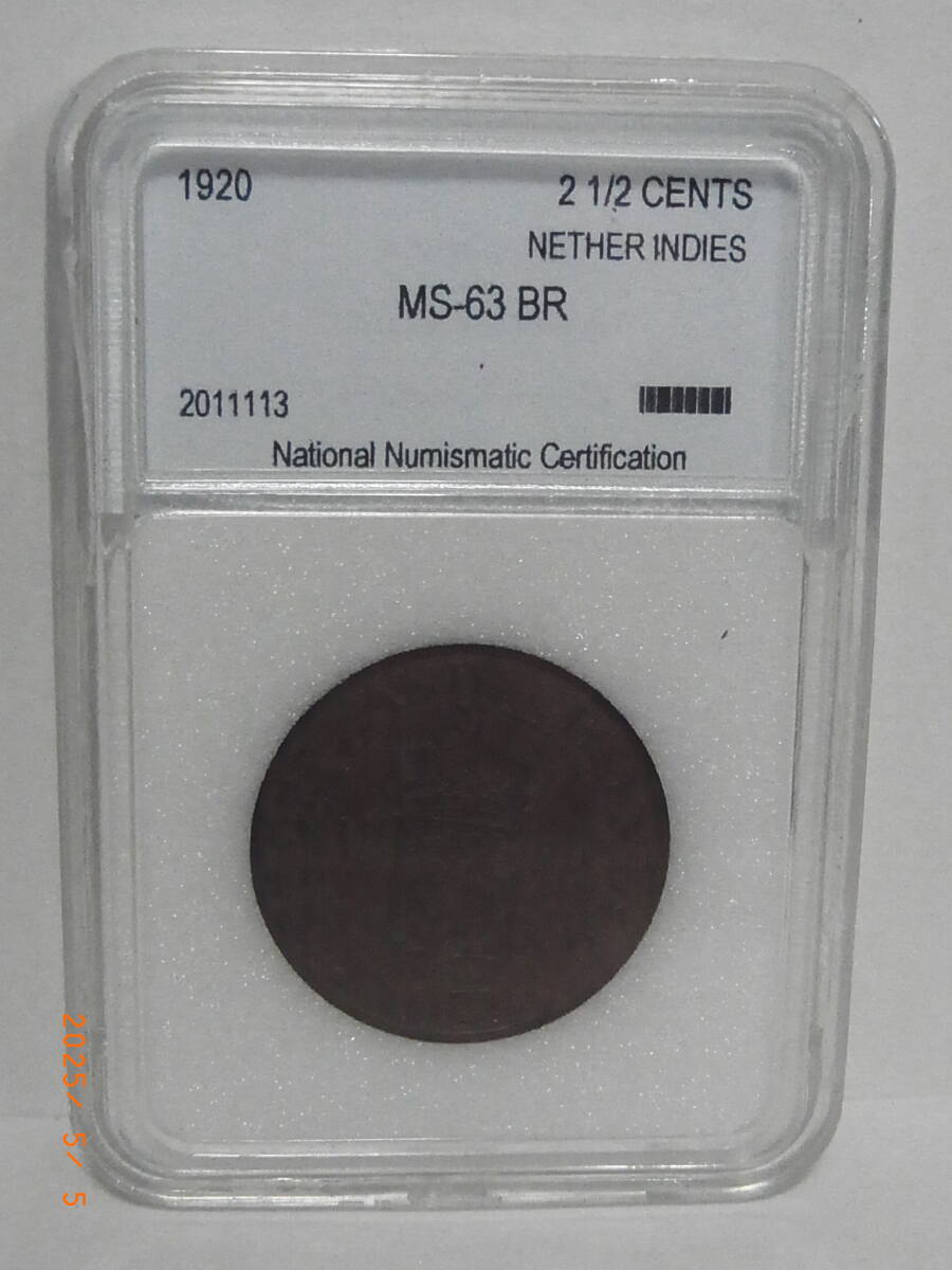 - オランダ領インドネシア 1920 NNC MS63BR 2-1/2セント銅貨 ★送料無料★