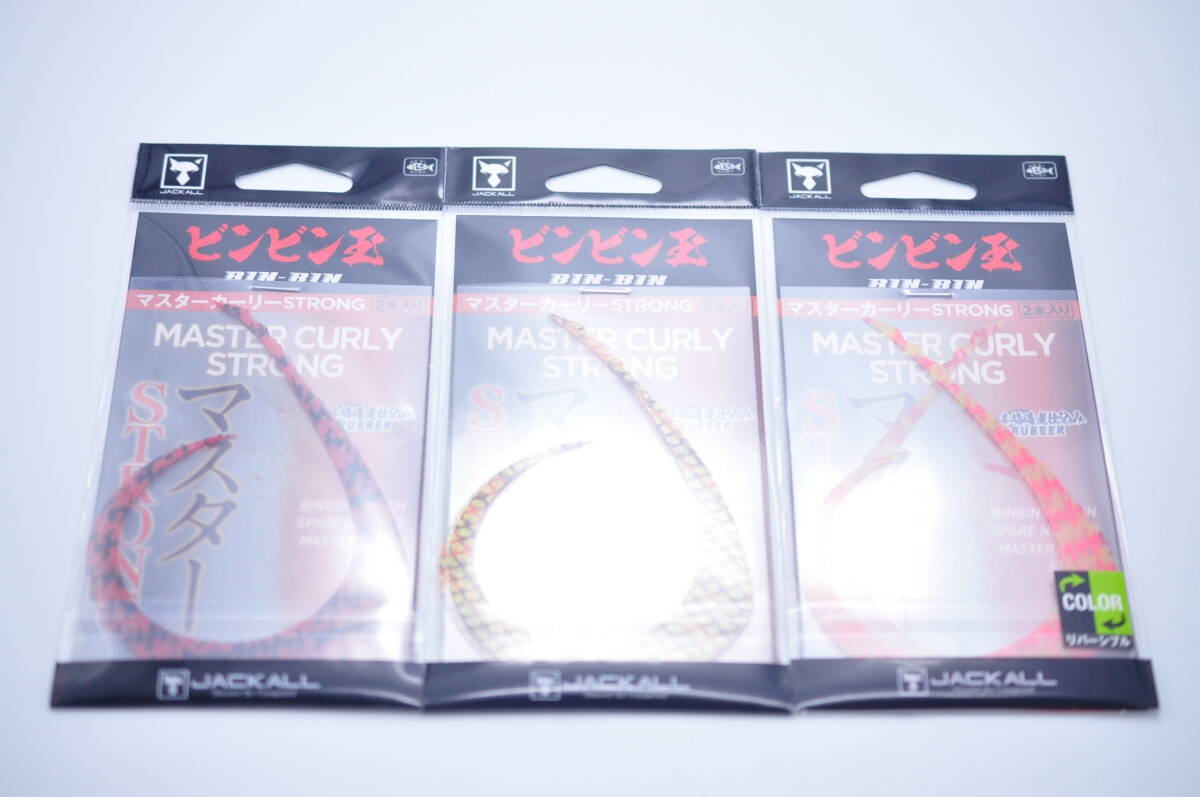 > ジャッカル マスターカーリー ストロング 未使用 3パック シマシマ赤&シマシマオレンジ金ラメ&エビチリ タイラバに 鯛ラバに