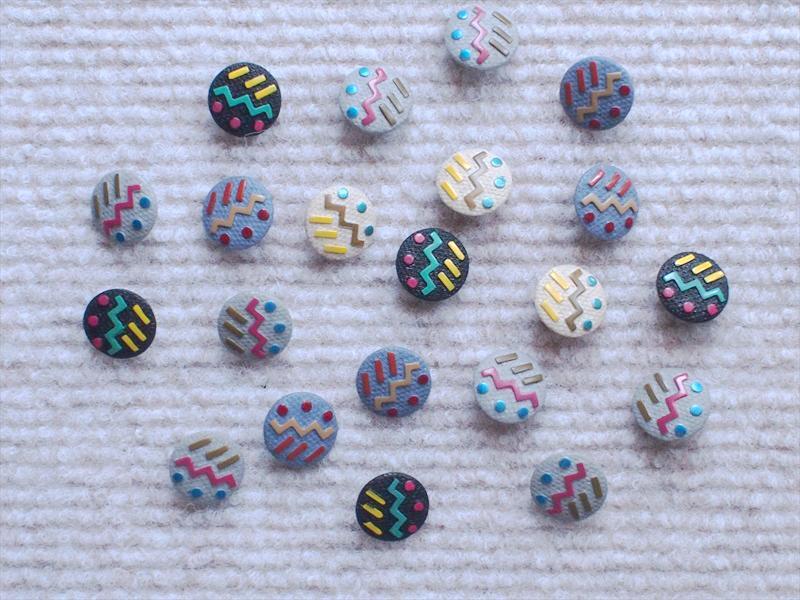 - レトロビンテージ手芸雑貨*幾何学ポップなボタン4色21個セットФ14mm☆リメイク装飾パーツデコ