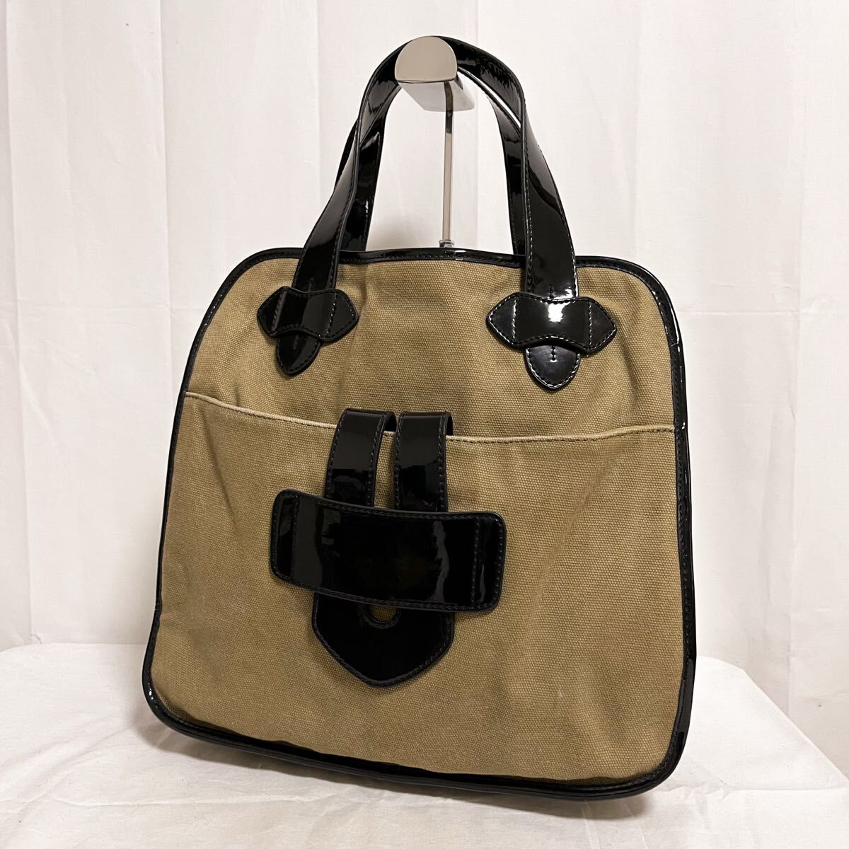 - 和727★① TILA MARCH ティラマーチ ハンドバッグ ハンドトート エナメル切替 カーキ ブラック レディース