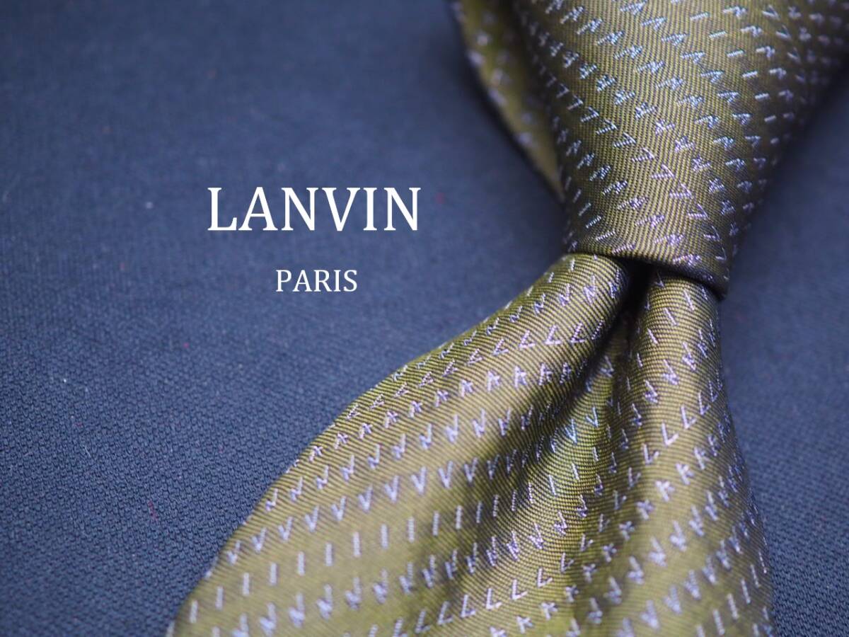 - 美品【LANVIN ランバン】 E1182 オリーブ系 SILK ブランド ネクタイ 古着 良品