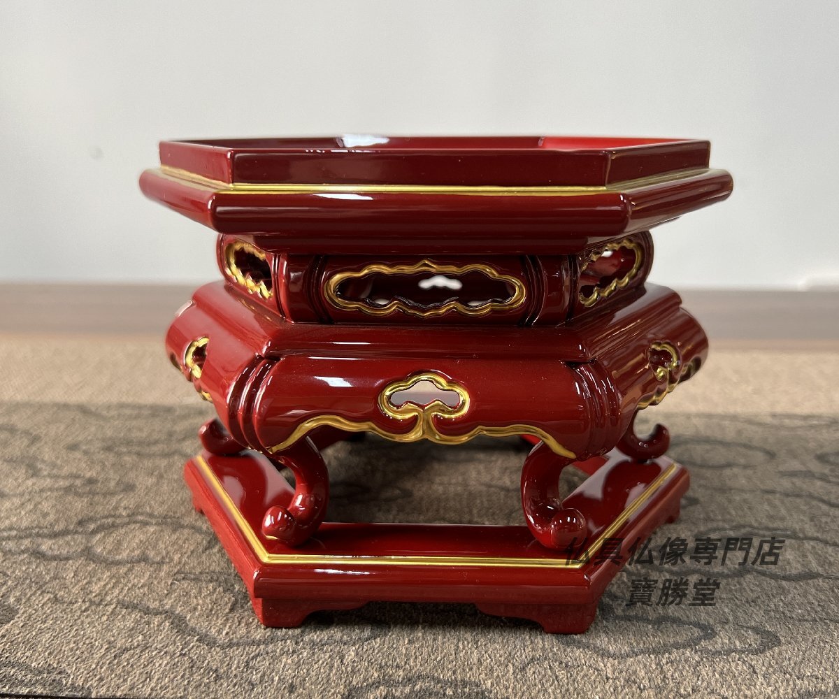 - 木製仏具 六角磬子(けいす)台 木製朱塗 【送料無料】【仏具仏像専門店寶勝堂】