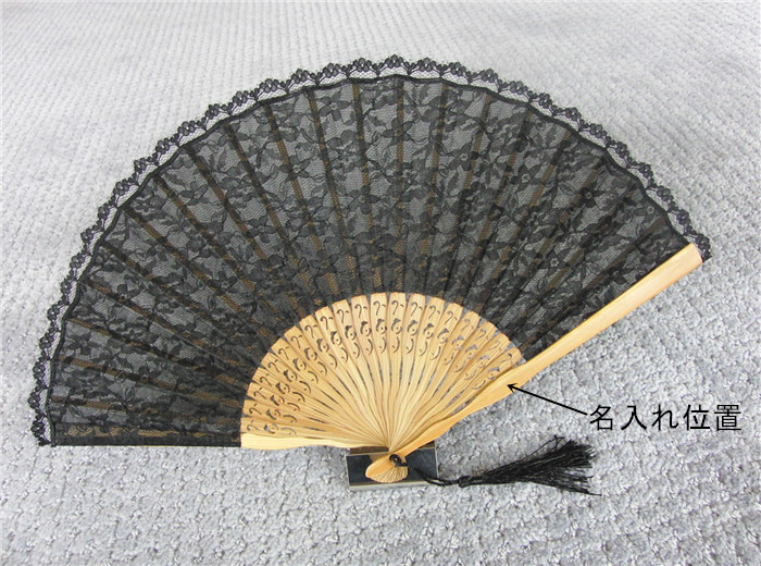 - 扇子 レース扇子 黒 ブラック 穂収納袋付き 親骨竹色 名入れ無料 送料無料