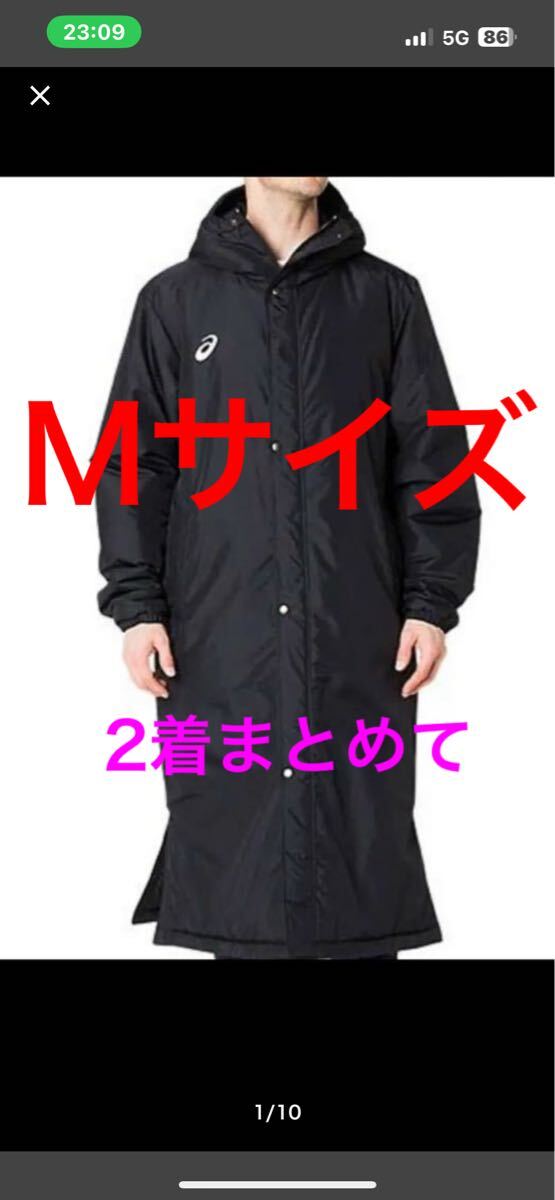 - 2着まとめ売り!値下げ!仕入れにも!送料無料!ベンチコート黒色Mサイズ男女兼用 ASICS SAVAS 定価14,000円以上