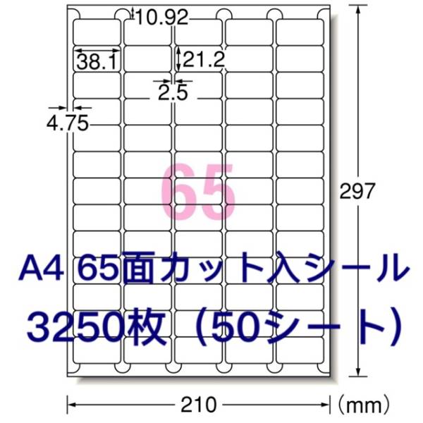 - マルチプリンタ対応★3250枚A4サイズ65面カット入★ラベルシール