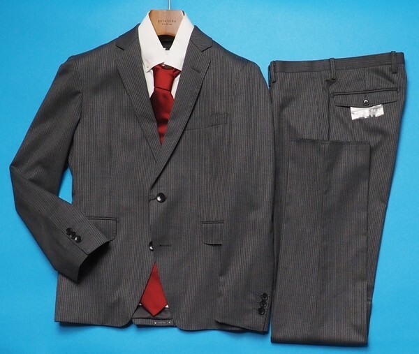 - 新品 大手百貨店扱い 秋冬 ウール混ギャバジン ストライプ ツーパンツ スーツ Y6灰(H) 1147262