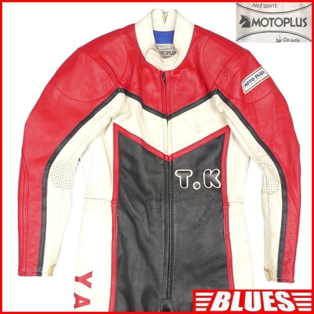 - 即決★MOTO PLUS★メンズM レザーレーシングスーツ モトプラス 黒 保護パット 赤 本革 ツナギ 本皮 つなぎ ライダース バイク メッシュ