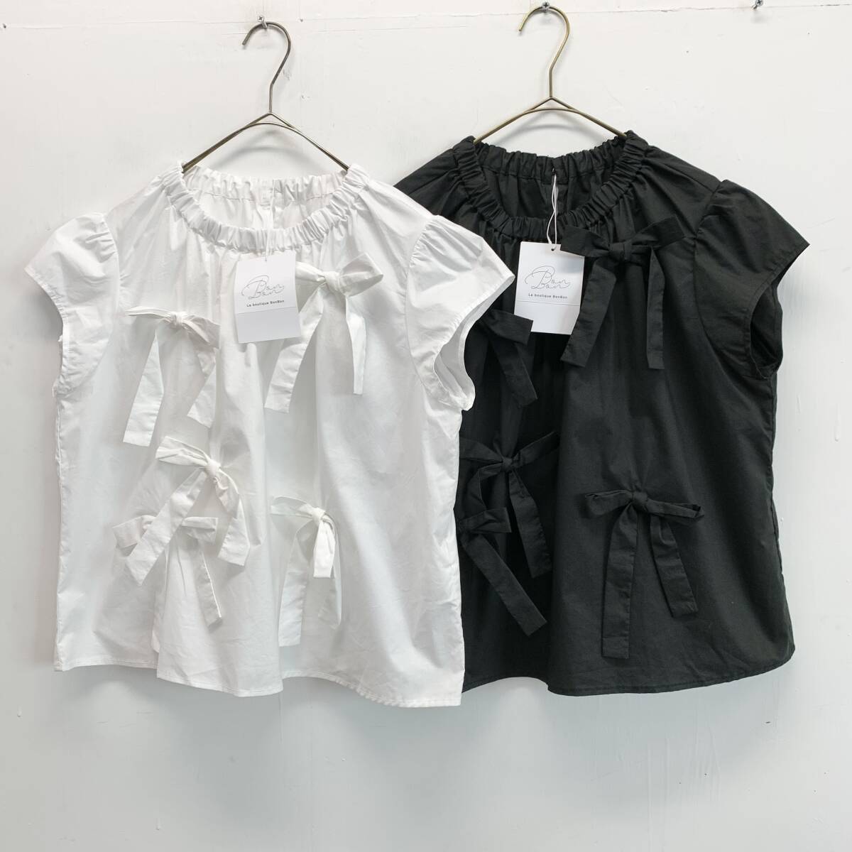 > ☆未使用品 2点まとめ ラブティックボンボン La boutique BonBon メニーリボンブラウス 白×黒 サイズF【レターパックプラス郵送可】C