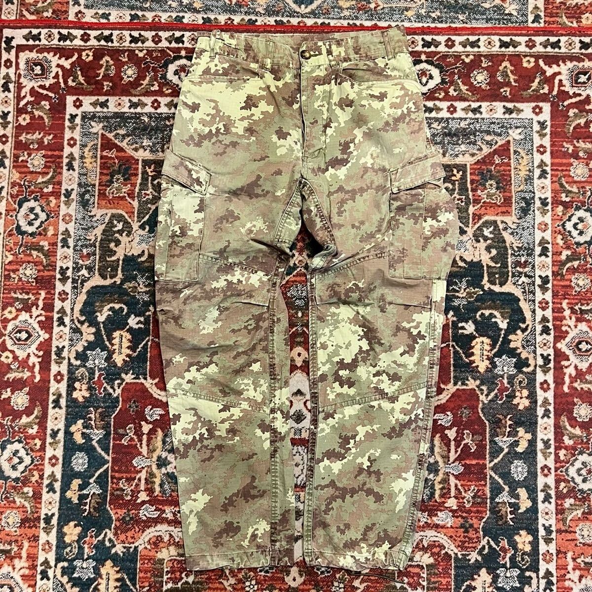 > Italian Army イタリア軍 カーゴパンツ ベジタトカモ デジタルカモ ミリタリー 実物 迷彩 現行品 ボタンフライ サイドポケット W76cm S/M