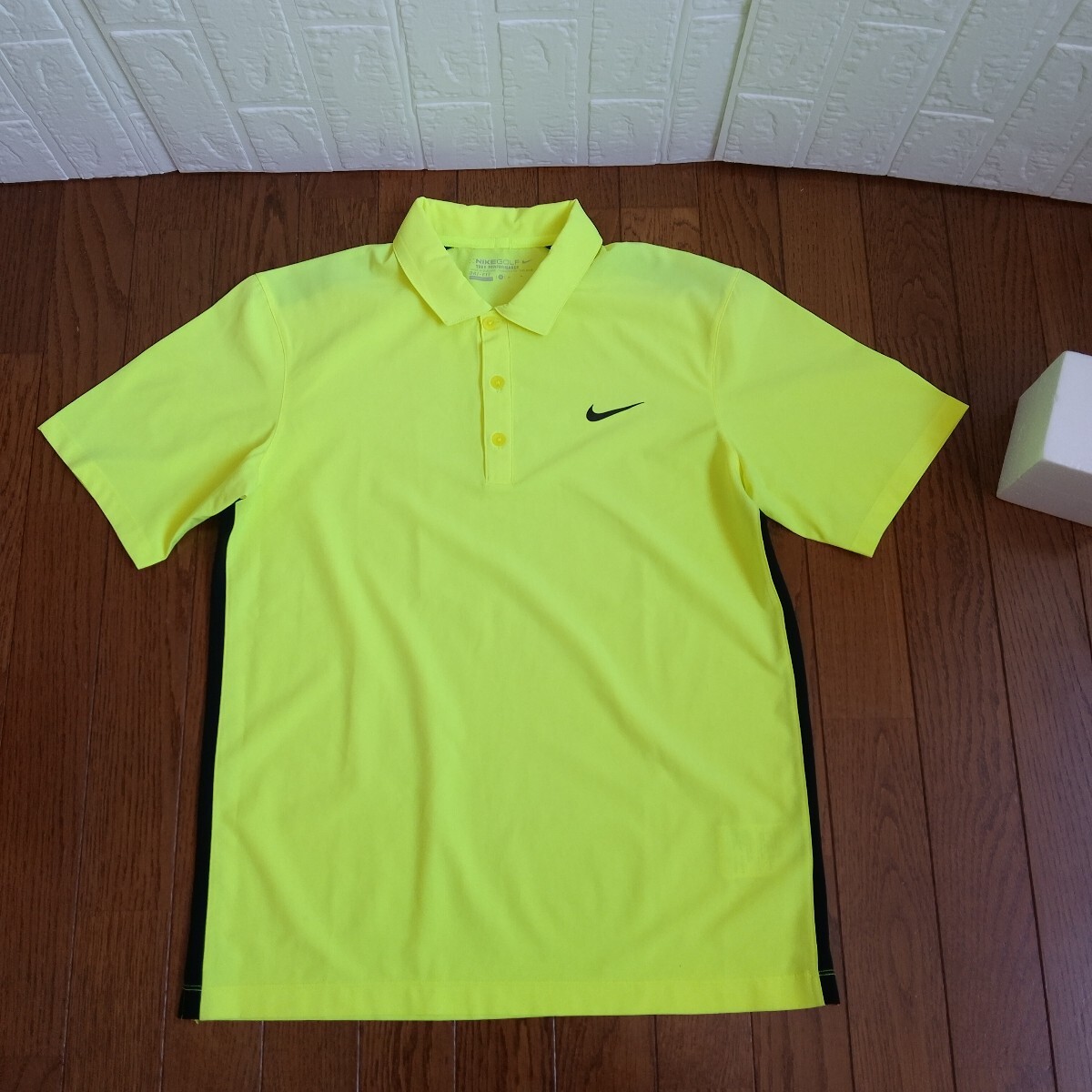> 1909【中古】NIKE GOLF ナイキゴルフ ゴルフウェア 半袖 ポロシャツ メンズ サイズ M 蛍光イエロー黒
