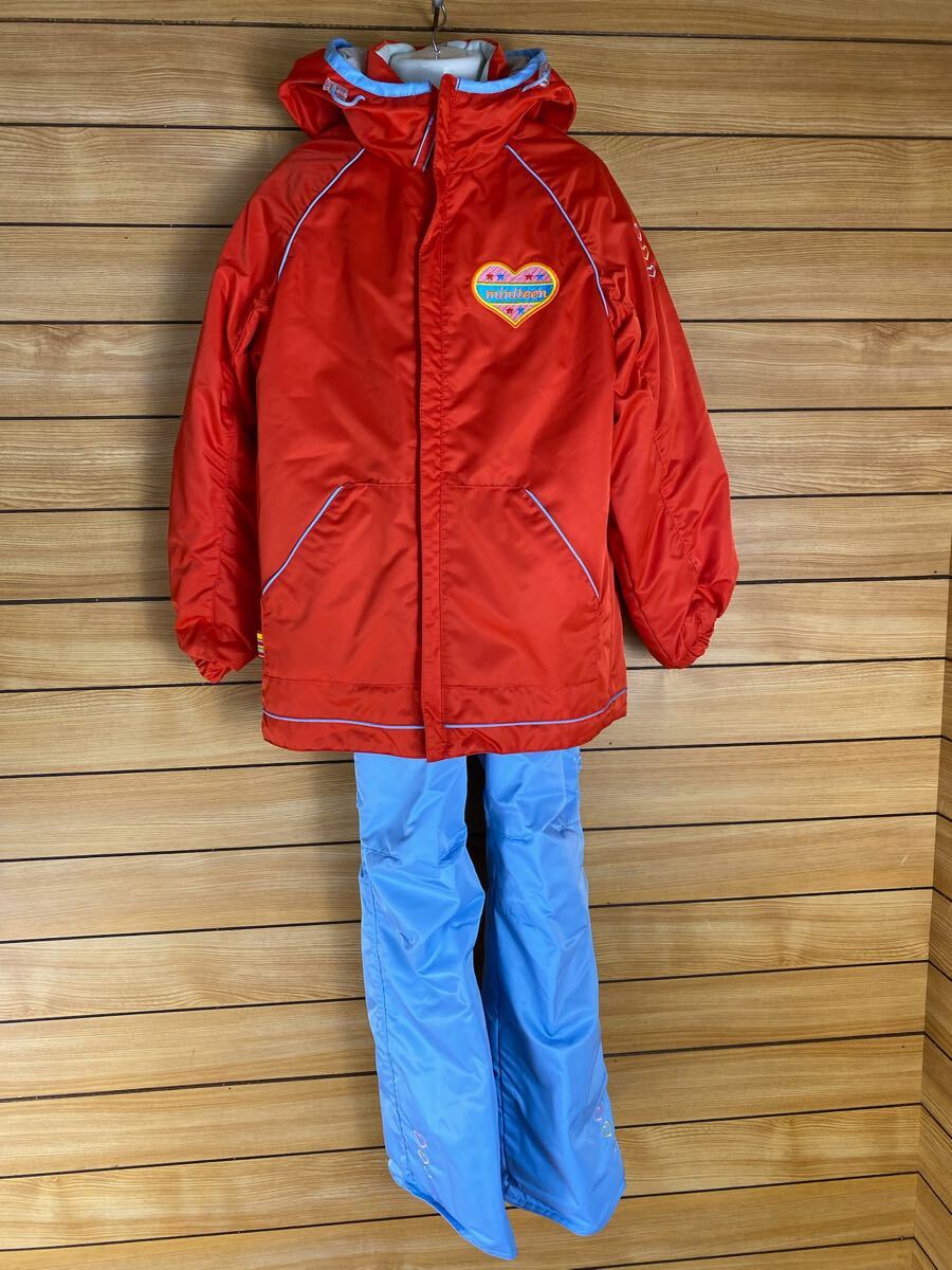 > 美品! ミニティーン 140cm サイズ調整紐 セットアップ スノーウェア キッズ レッド ブルー