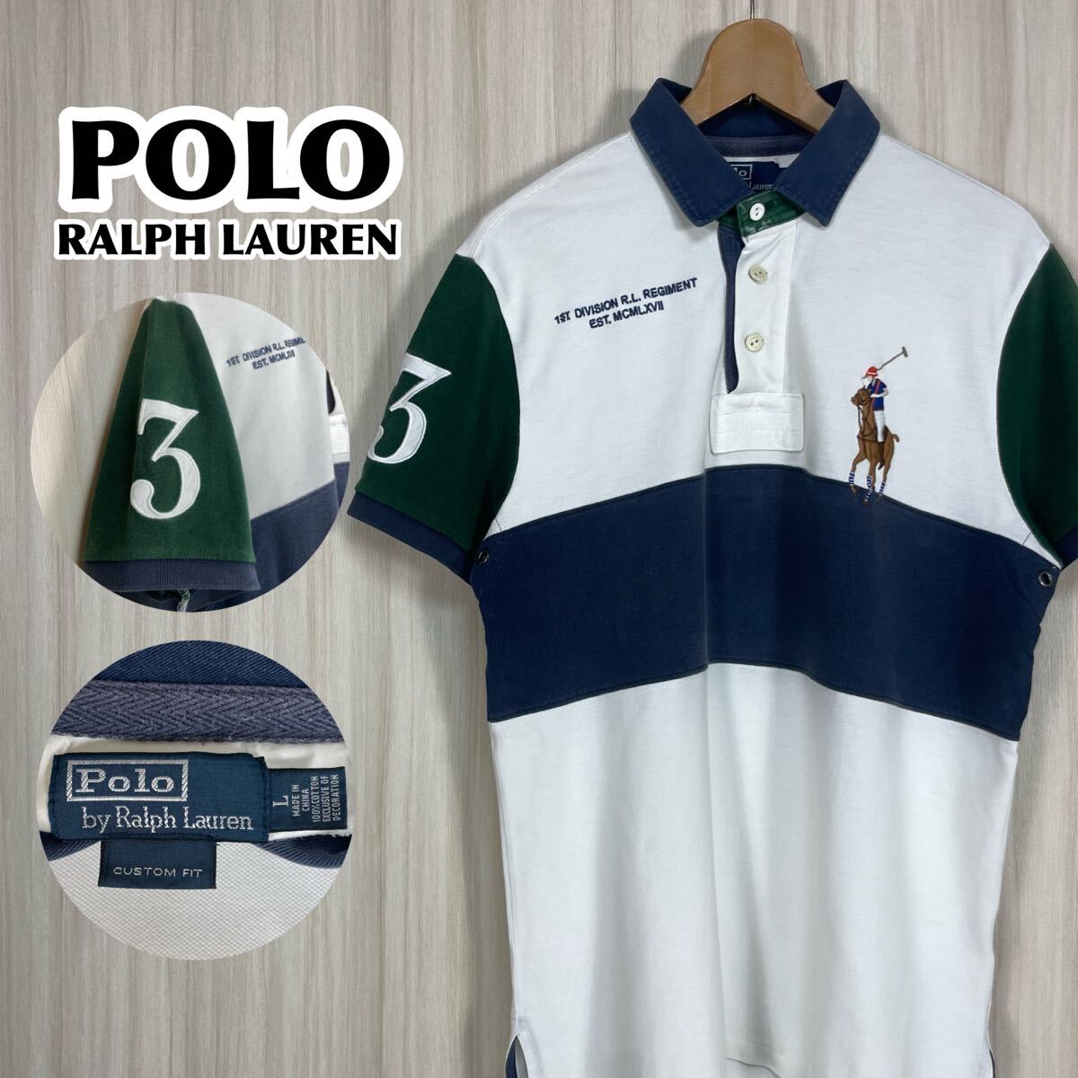 > ☆希少☆POLO ポロバイラルフ ビッグポニー 半袖ラガーシャツ L ホワイト 切り替え配色 袖ゼッケン 両脇エア通気口 刺繍ロゴ アメカジ 古着
