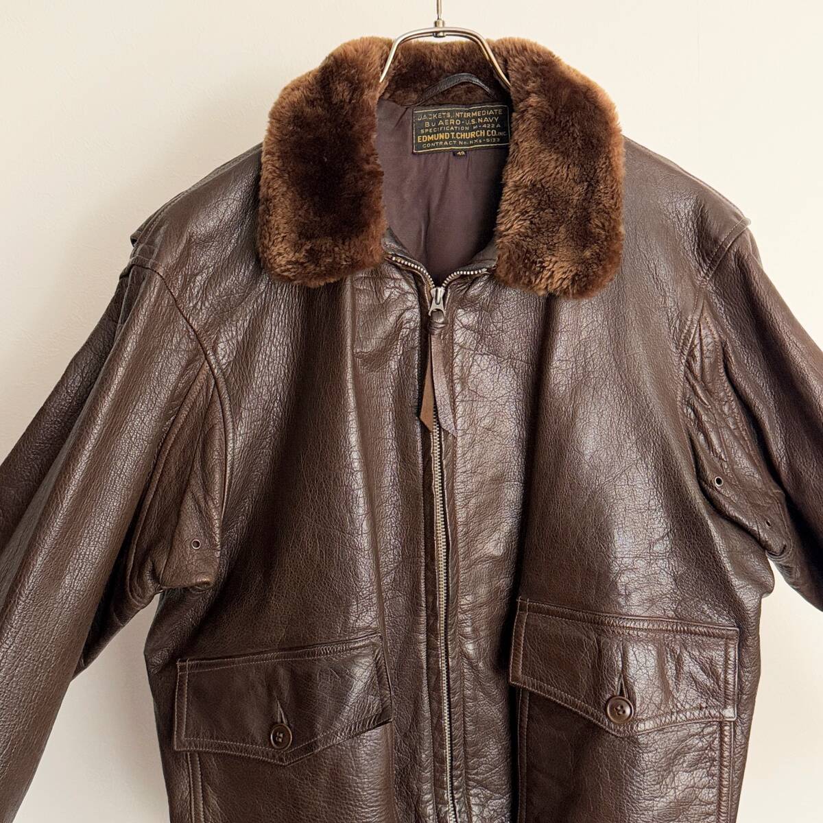 > 希少《 Good Condition / M422A / Size 44 》40s 美品【 大戦 EDMUND T.CHURCH CO レザー フライトジャケット 42 ビンテージ 】
