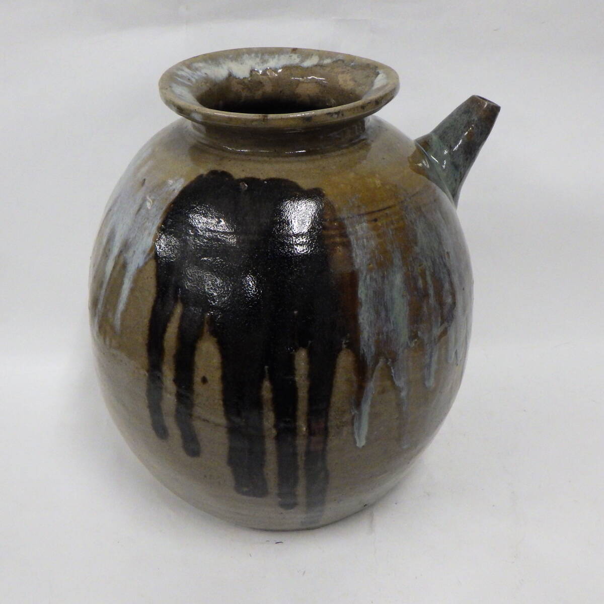 - 花瓶 花器 花入れ フラワーベース 壺 口付き 陶器 穴あり 詳細不明