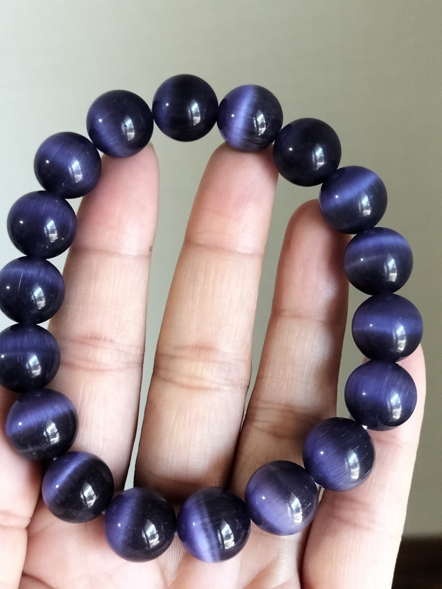 - キャッツアイ 濃紫色 猫眼石 パワストーン ブレスレット 12mm
