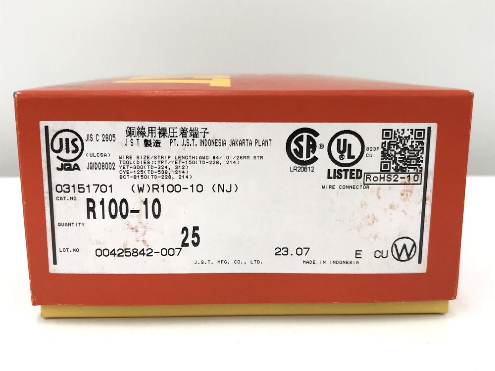 > 【同梱可】【60】未開封品 JST 日本圧着端子製造 R100-10 銅線用裸圧着端子 25個入 ※外箱ダメージ有