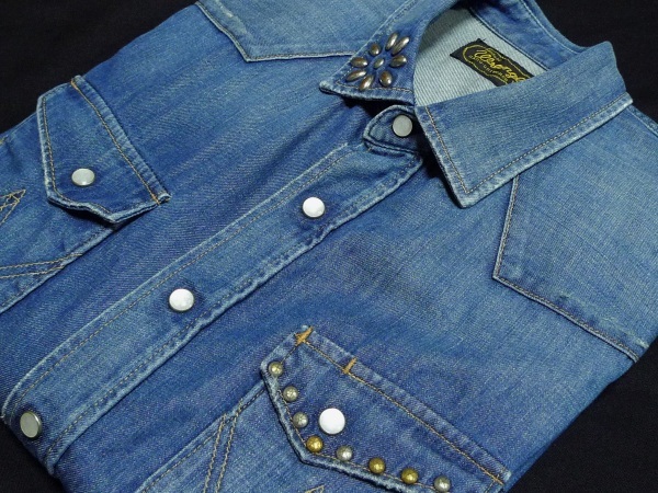 > 美品別注WranglerラングラーxNanoUniverse[27MW]長袖デニムウエスタンシャツSスタッズUsedWash\14300