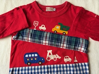 > ミキハウス★長袖Tシャツ★100★きれい赤¥車アップリケ★チェック地別布★長袖シャツ