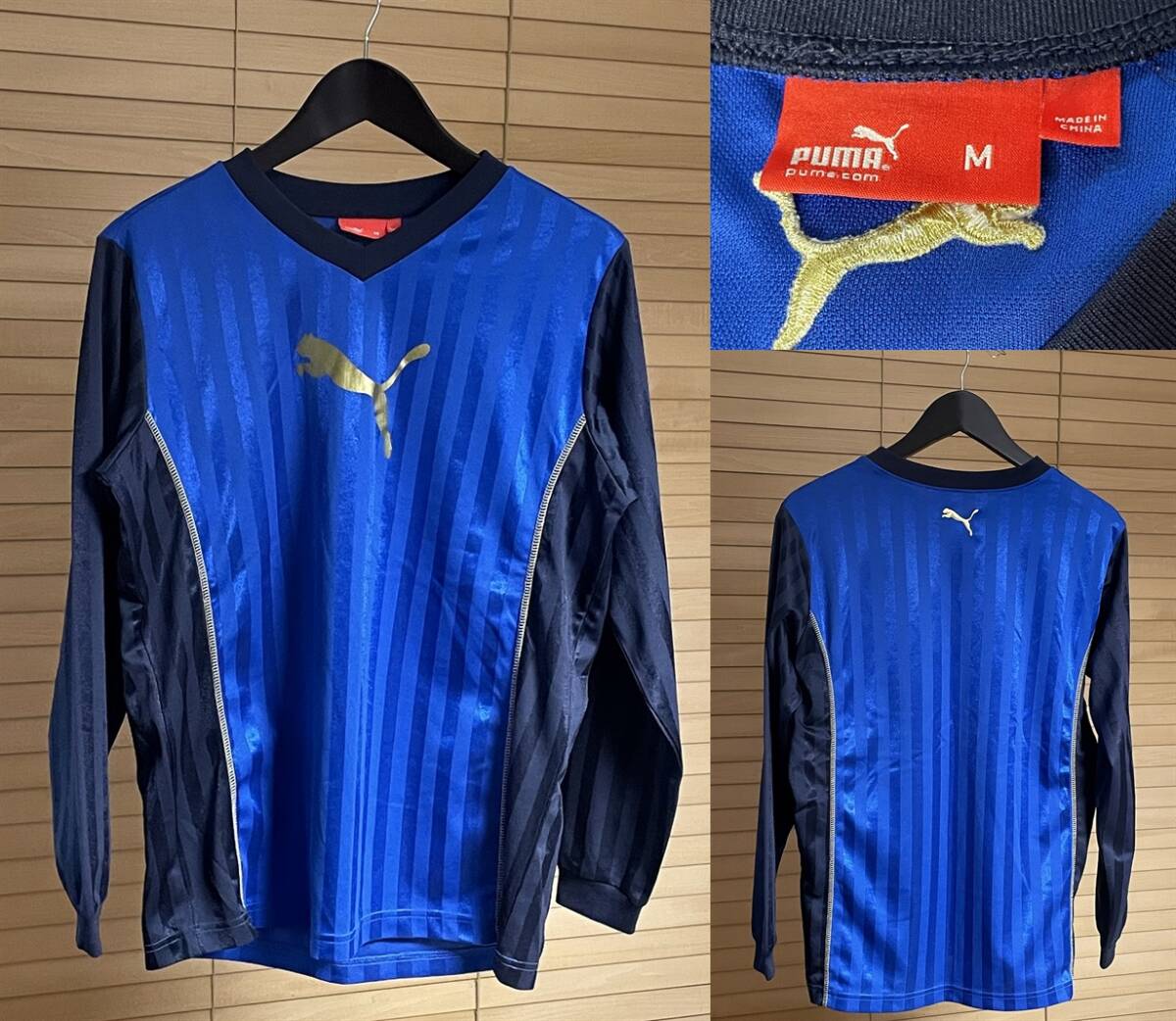 - 【激安1点のみ 国内正規品】PUMA プーマ Vネック ストライプ 長袖 プラシャツ プラクティスシャツ M ブルー×ネイビー系 ポリエステル100%
