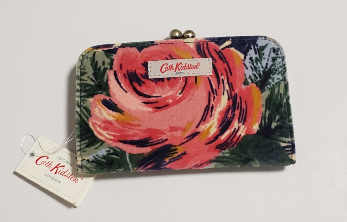 - 新品 未使用 キャスキッドソン CathKidston ベルベット オックスフォードローズ バラ がま口財布 折り財布 薔薇 ネイビー