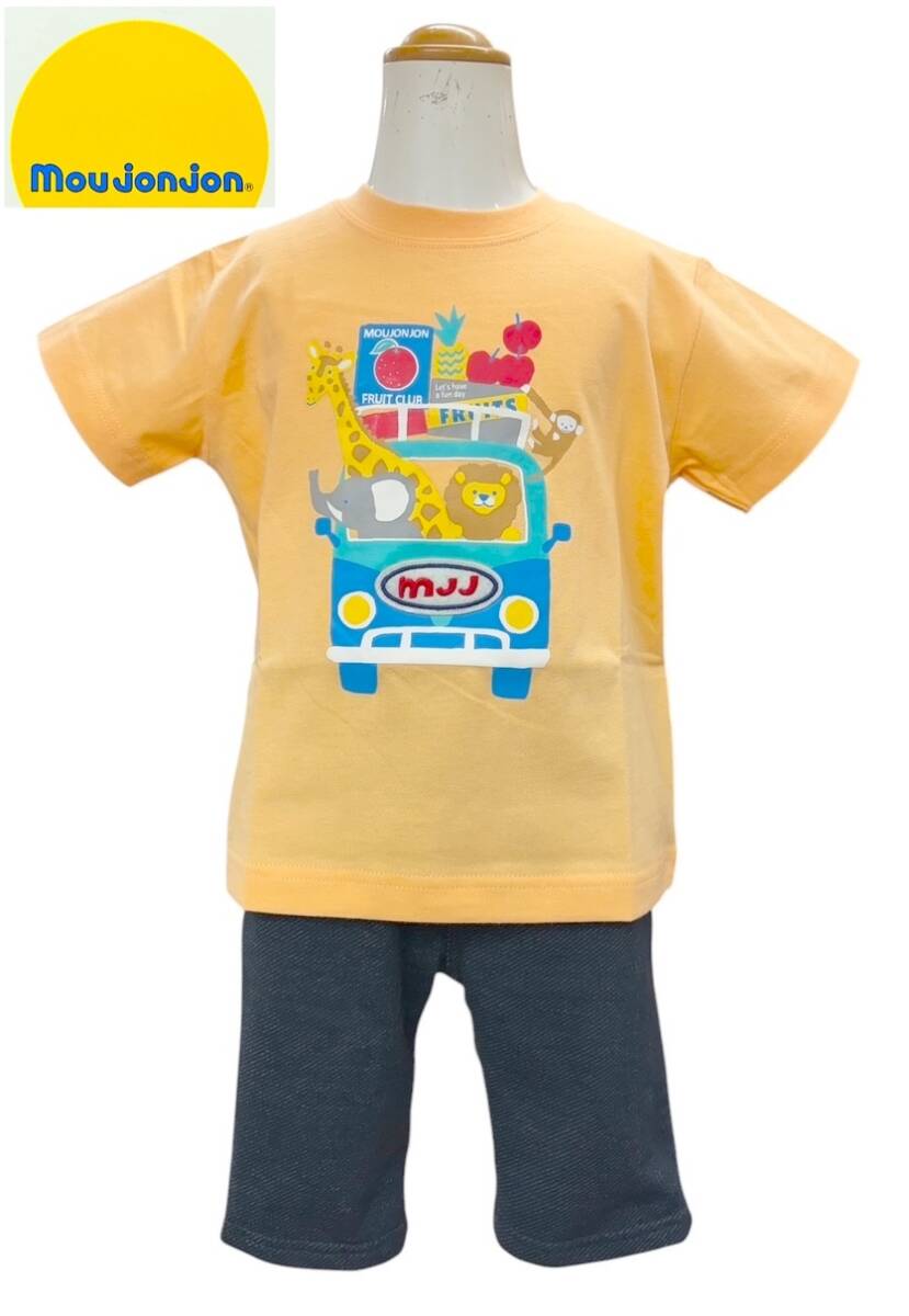 > 即決 新品タグ付 Moujonjon ムージョンジョン★フルーツと車柄 プリント 天竺 半袖Tシャツ★ベビー 100cm 3-4才 ¥2200