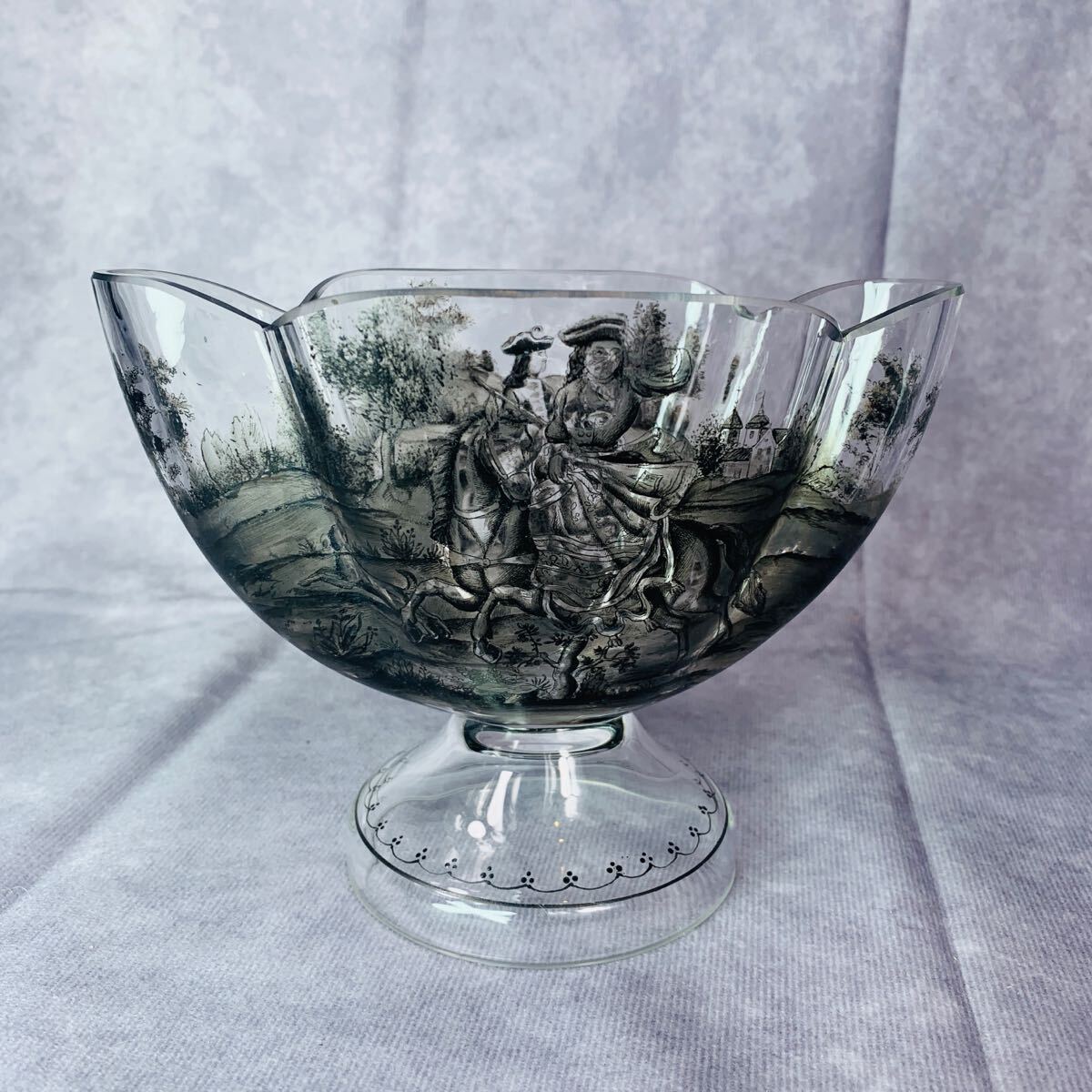 > アンティーク ガラスエナメル彩 貴婦人貴族狩猟図 ハンティングシーン HAIDA STEINSCHNAU シュタインショーナウ 変形花器 グラス 2