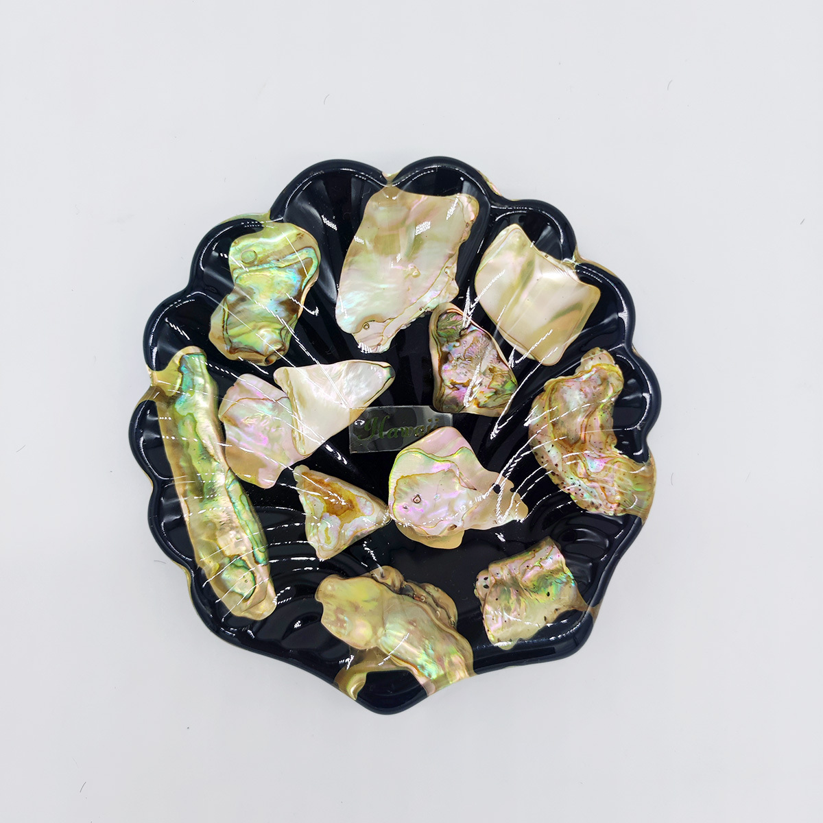 貝が埋め込まれている飾皿です。商品について詳しくないため、詳細については不明です。付属品は写真の物が全てとなります。キズ・汚れ等ございます。詳しい商品状態については写真をご確認ください。