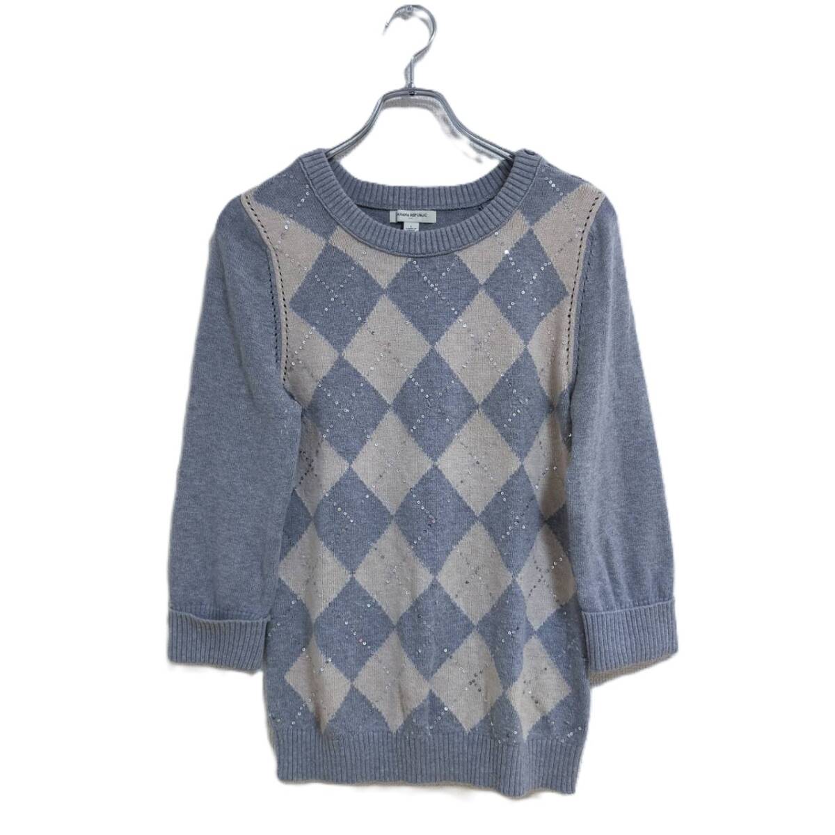 > BANANA REPUBLIC ニット 七分袖 グレー L アーガイル柄 アンゴラ混 刺繍入り カジュアル 上品 柔らか きれいめ 美品