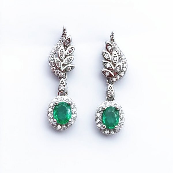 女性のためのオーバル天然エメラルドピアス、925スターリングシルバー